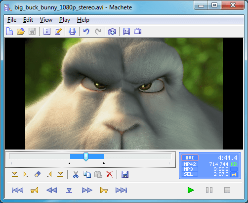 This only says that the editing process will be simple and fast, and the most important thing is that you will not lose anything in quality. Machete will work quickly even on weak machines, and on powerful ones generally fly. After you open the file, edit it and save it, the format will remain original.