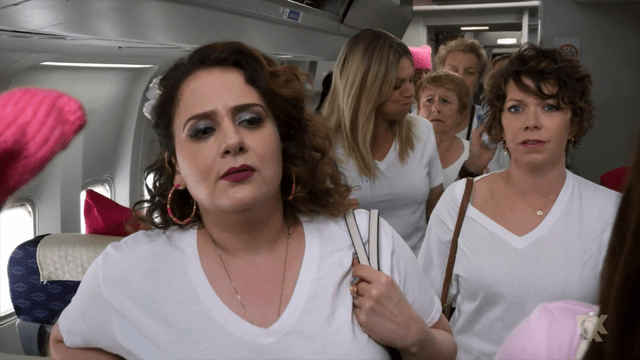 To one-up the guys, Dee has organized an "all-female reboot" of the Wade Boggs challenge on a first-of-its-kind, all-female flight headed to L.A. for the women's march.
