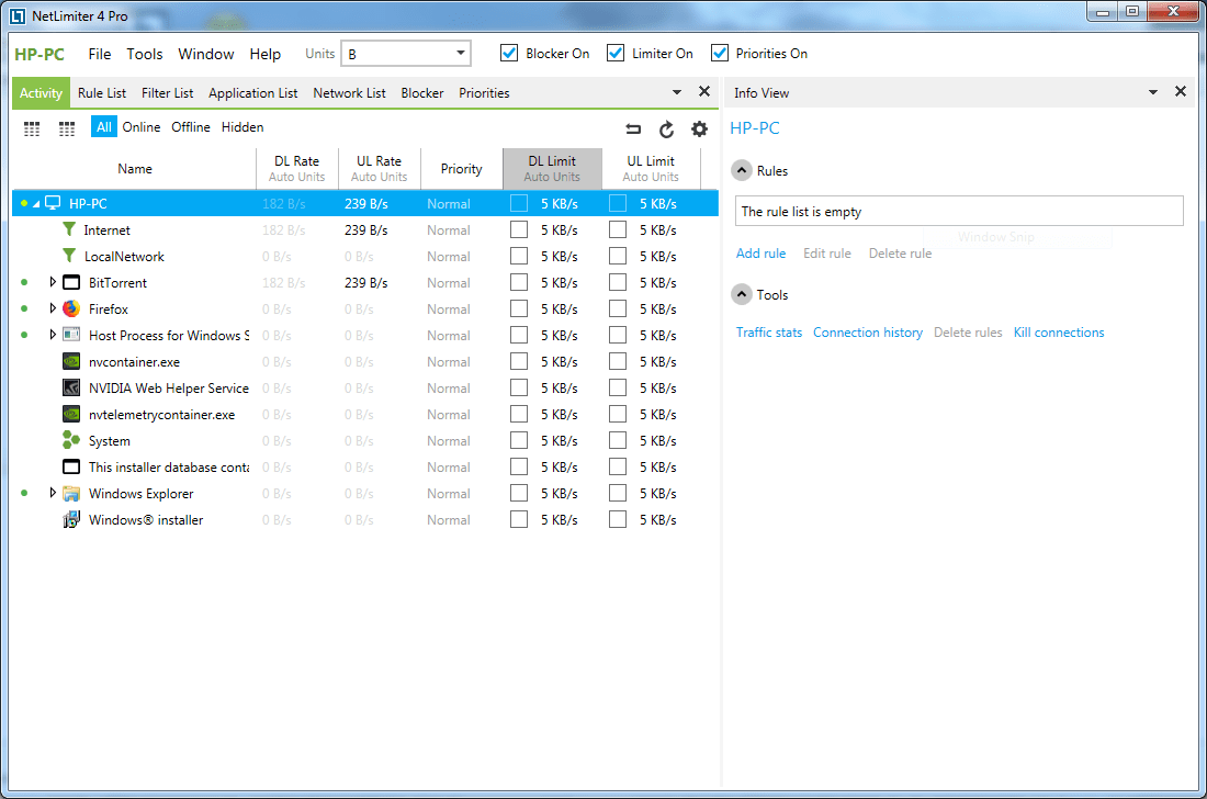 NetLimiter is an ultimate internet traffic control and monitoring tool designed for Windows. You can use NetLimiter to set download/upload transfer rate limits for applications or even single connection and monitor their internet traffic. Along with this unique feature, Netlimiter offers comprehensive set of internet statistical tools. It includes real-time traffic measurement and long-term per-application internet traffic statistics.