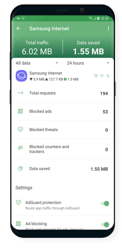 More ads blocked means fewer ads loaded. Fewer ads loaded means more traffic saved. Simple math by AdGuard! Download the apk file, install the app and spend your traffic on things you like instead of wasting it on voracious ads.