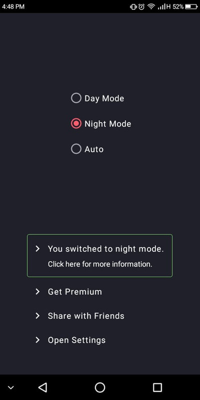 This app helps to activate the Android night mode on devices that do not provide this option in the system settings.