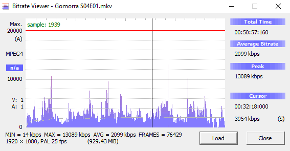 Below is a screen grab of the bitrate for episode 1.