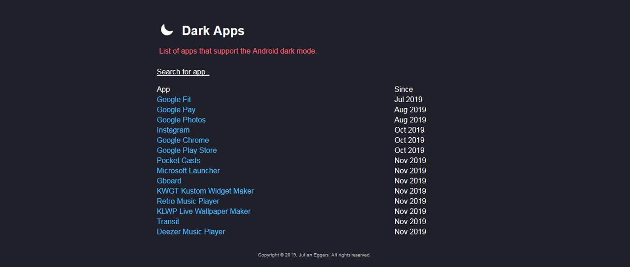 Since Nov. 21, 2019 some Samsung Galaxy devices repeatedly switch back to day mode. This is not an issue with the Dark Mode app but with the Email app by Samsung.