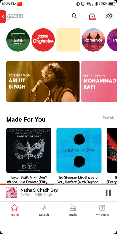 Gaanais the one-stop music app for all your Music needs. Gaana offers you free, unlimited online access to all your favorite Hindi Songs, Bollywood Music, Regional Music & Radio Mirchi - on your mobile phone.