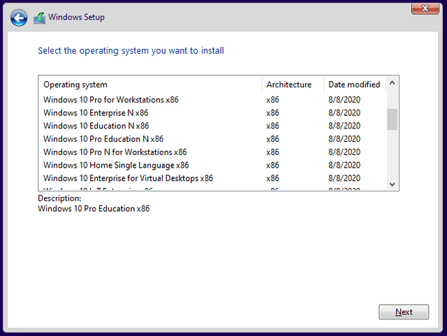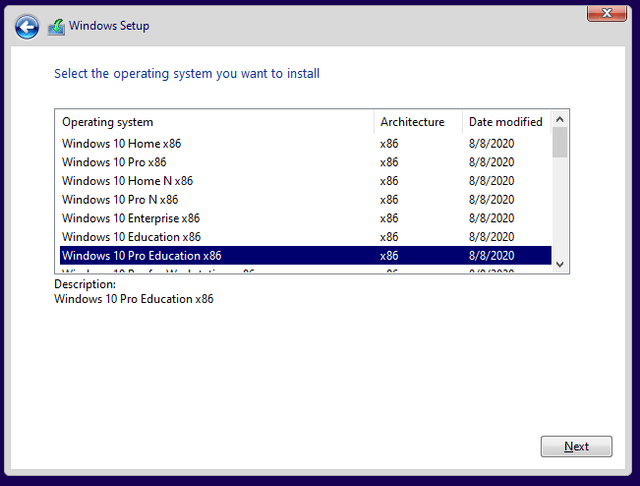 Windows 10 Education N x86
