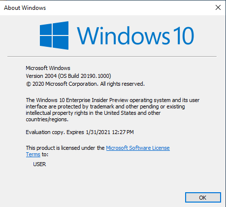 Minimum for all Windows 10 editions (apply to version 2004):