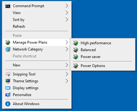 Show 'Manage Power Plans' Context Menu
