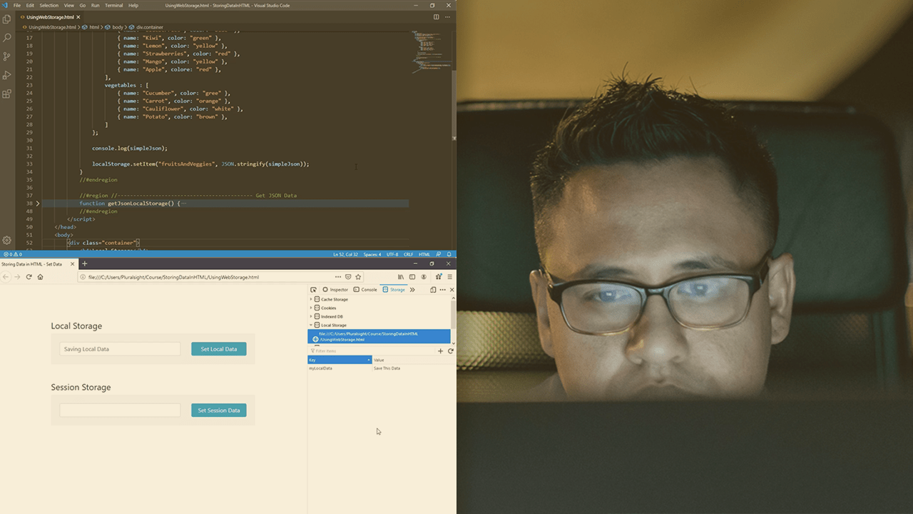 Pluralsight - Storing Data in HTML [AhLaN] 03. Using Local and Session Storage- 04. Demo - Loop through All Data in Web Storage.mp4 (13.2 MB)