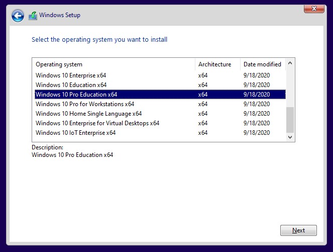 Windows 10 Education x64