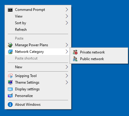 Change 'Network Category' Desktop Context Menu
