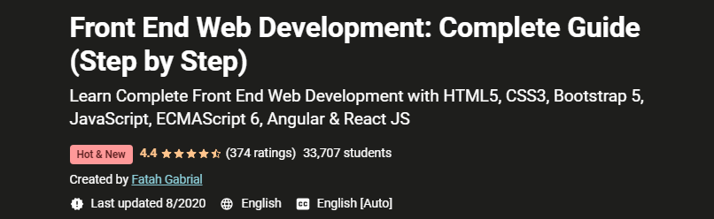 In this Front End Web Development - Complete Guide (Step by Step) you will learn complete front end development from scratch. You will learn complete HTML5, CSS3 step by step. Later you will learn to add interactivity with JavaScript. You will also learn the modern JavaScript techniques with ECMA Script 6.