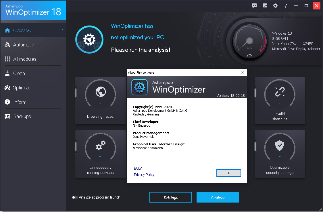 Ashampoo WinOptimizer 18 takes care of that! Operating systems tend to slow down over , suffer from errors and become cluttered with junk files. In many cases, essential settings are either missing or buried deep in the system. And then there's the privacy threat, as especially Windows 10 loves to phone home.