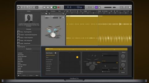 Using Drummer is like hiring a session drummer or collaborating with a highly skilled beat programmer. Create organic-sounding acoustic drum tracks or electronic beats with the intelligent technology of Drummer. Choose from dozens of drummers who each play in a different musical genre, and direct their performances using simple controls.