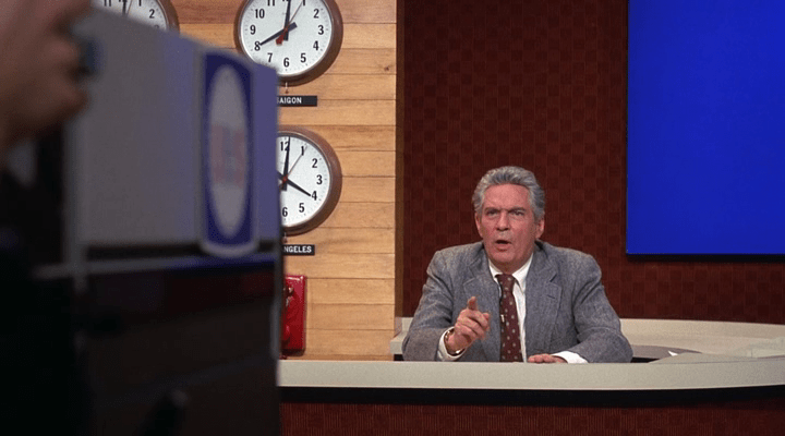 A television network cynically exploits a deranged former anchor's ravings and revelations about the news media for its own profit.