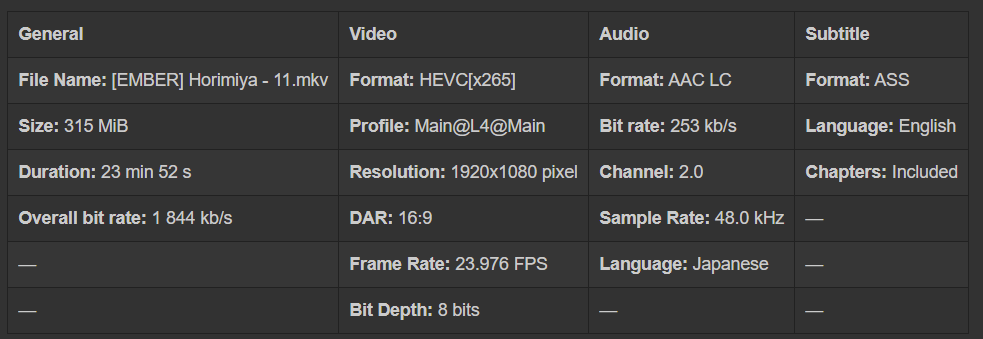 - [EMBER] Horimiya - 11.mkv (314.7 MB)
