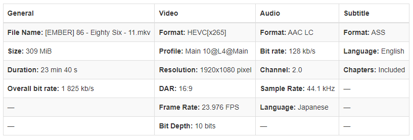 - [EMBER] 86 - Eighty Six - 11.mkv (309.0 MB)