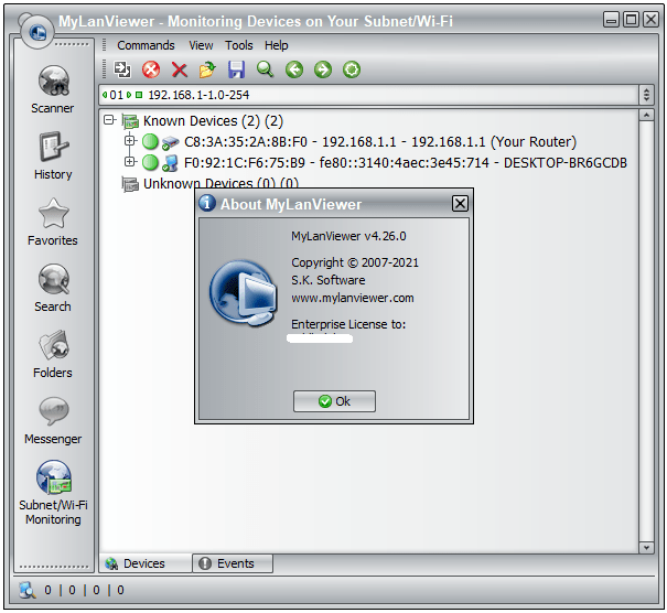 MyLanViewer Network/IP Scanner supports remote shutdown, wake-on-lan, lock workstation, log off, sleep, hibernate, reboot and power off. It is able to monitor IP address and show notifications when the states of some computers change. MyLanViewer Network/IP Scanner can also view and access shared folders, terminate user sessions, disable shared folders, show netstat information and detect rogue DHCP servers. The software can monitor all devices (even hidden) on your subnet, and show notifications when the new devices will be found (for example, to know who is connected to your WiFi router or wireless network). The program easy to install and use, and has a user-friendly and beautiful interface.