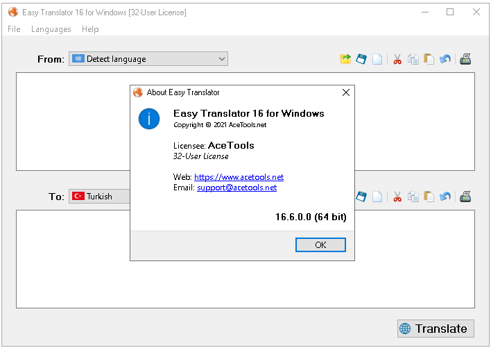 Overall, Easy Translator is a small but efficient tool that performs translations between multiple languages. It's easy to work with and no computer skills are required to master this tool. It only packs standard features for dealing with the translation process so it cannot compete with other powerful tools on the market.