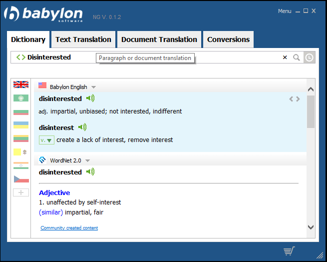 Babylon translation software helps you understand the world. You can instantly translate words, paragraphs, and entire documents, while also receiving dictionary and Wikipedia results, with only the click of a button. Add to this, text to speech and advanced grammar correction and you have an indispensable tool for work, school, and home.