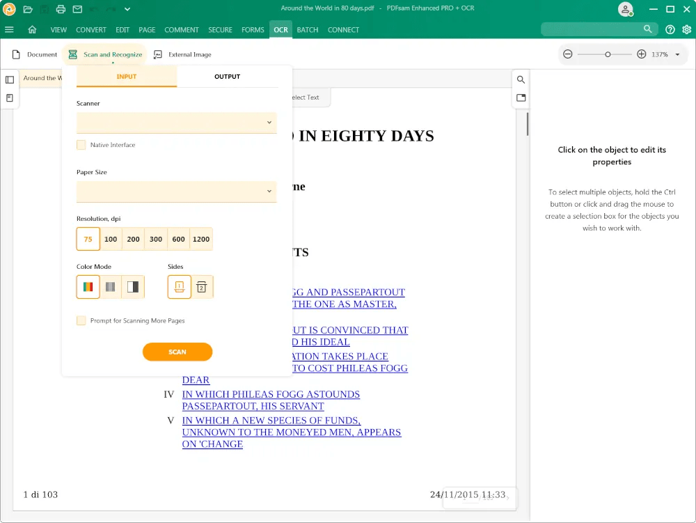 Recognize text within images and scanned documents transforming them into editable PDF files. Batch recognize the text within multiple files.
