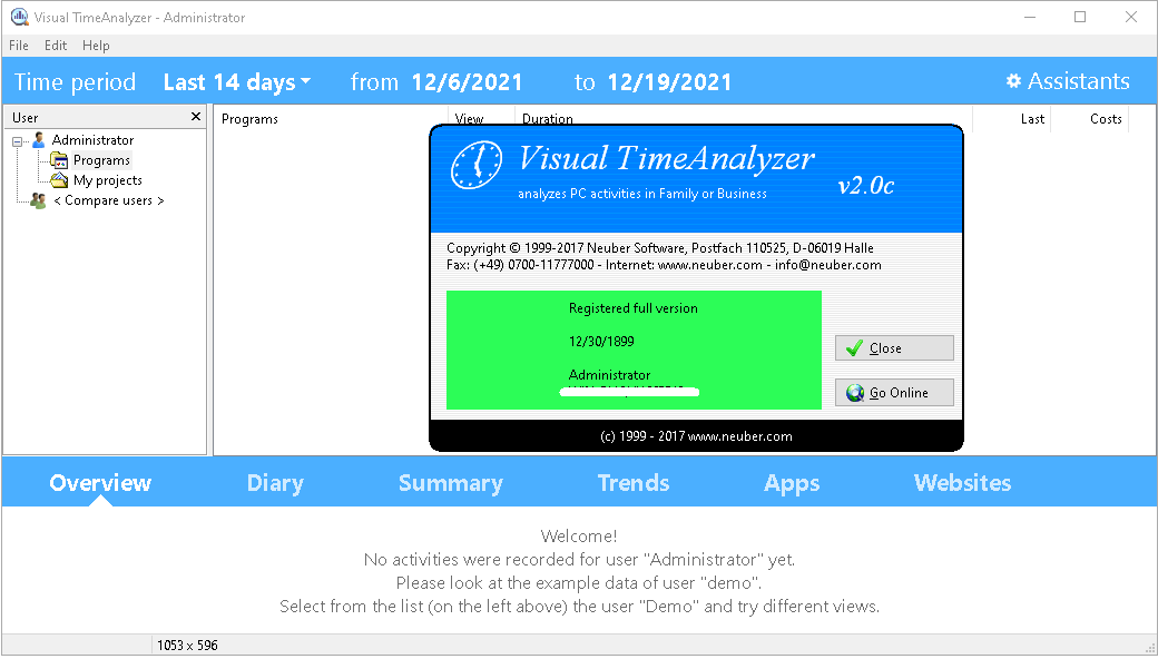Privacy: Safeguard user data (such as passwords and personal documents): Visual TimeAnalyzer does not record specific keystrokes or run background screen captures.