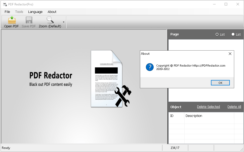 Redact and Black Out PDF Text and Images Easily. PDF Redactor is a Windows PDF redaction software tool designed to redact (black out) or delete sensitive text and images in a PDF file to protect the privacy of PDF content.
