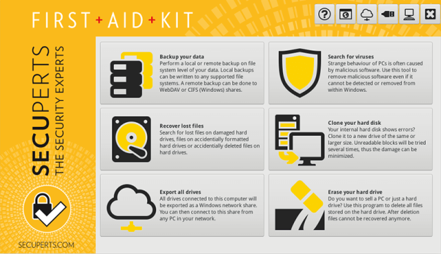 The First Aid Kit for your data and your Windows installation! Protect yourself from data loss and Windows problems. When simply nothing works any more or troublesome viruses and Trojans are making your life miserable! Be prepared for emergencies - with the SecuPerts First Aid Kit!