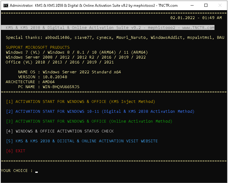 This tool includes 4 different activation methods. KMS Inject, Digital, KMS 2038 and Online activations. While this script is being created, abbodi1406's script is referenced. Thank him so much. Some security programs will report infected files, that is false-positive due KMS emulating.