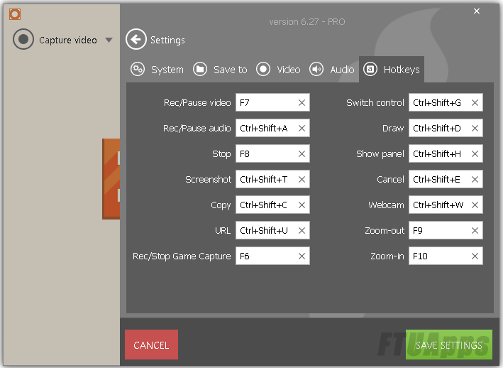 • Use hot keys to control the video recording process with the screen and create screenshots.