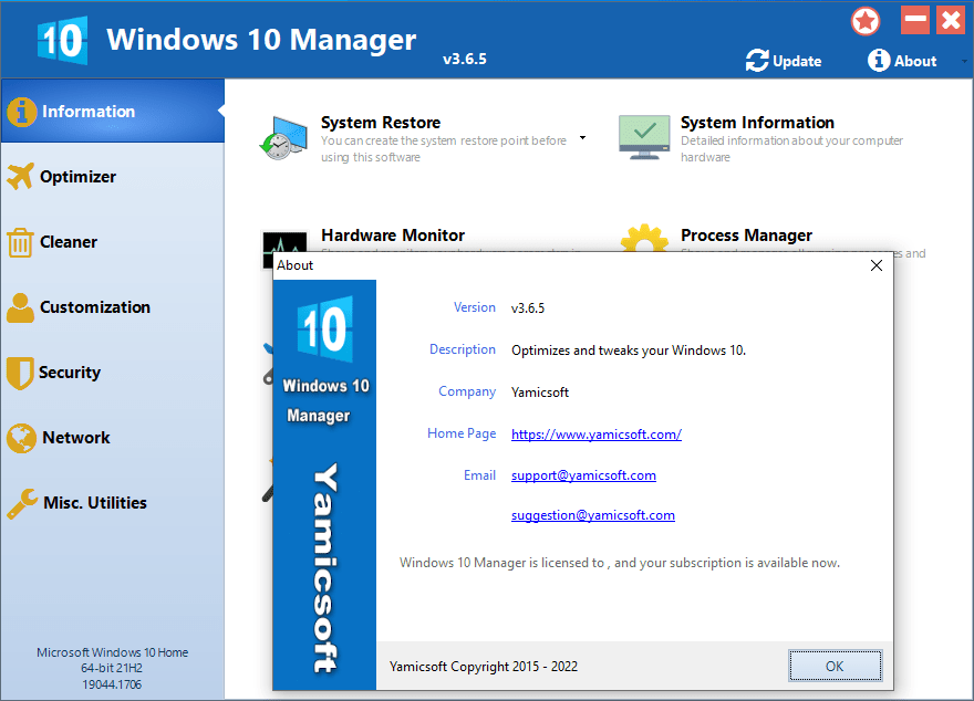 Yamicsoft Windows 10 Manager 3.6.5 Multi Final Full Version