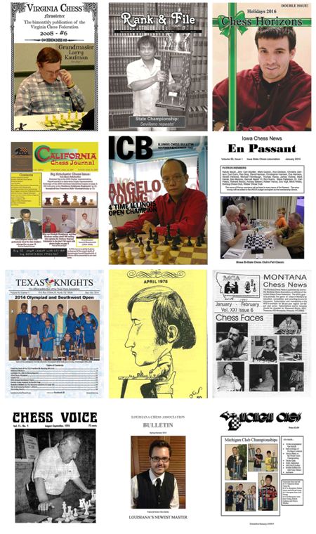 A collection of almost 800+ chess magazines/newletters/bulletins from various American state chess associations in PDF format. Published either monthly, bimonthly or quarterly. They contain local chess events news, cross-tables, games, interviews & theory articles. Please seed for others after you download: