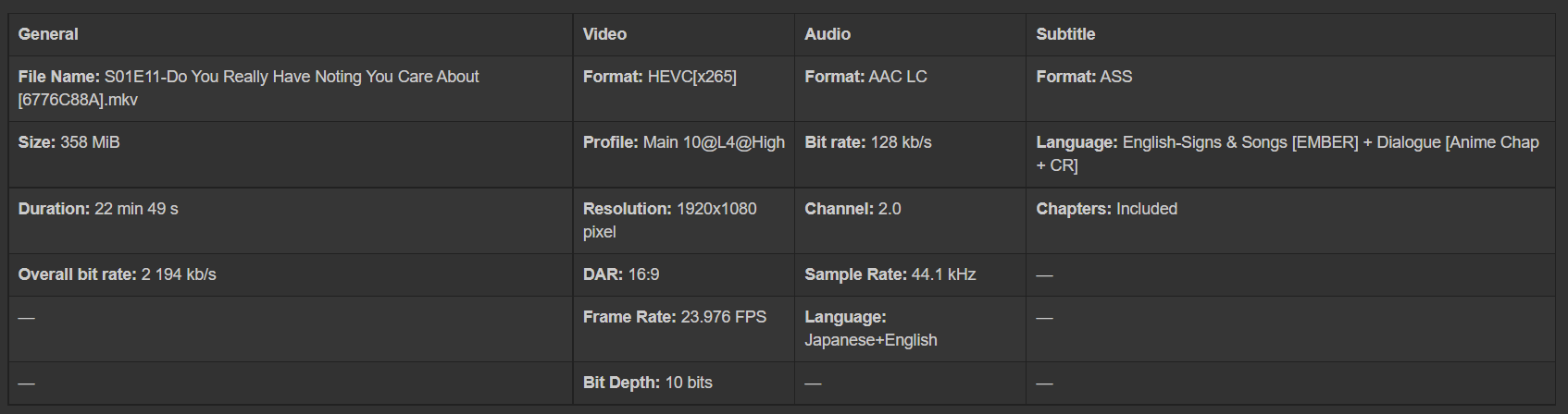 - S01E11-Do You Really Have Noting You Care About [4D74ADD6].mkv (359.5 MB)