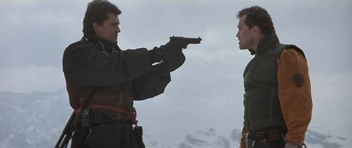 A year after losing his friend in a tragic 4,000-foot fall, former ranger Gabe Walker and his partner, Hal, are called to return to the same peak to rescue a group of stranded climbers, only to learn the climbers are actually thieving hijackers.