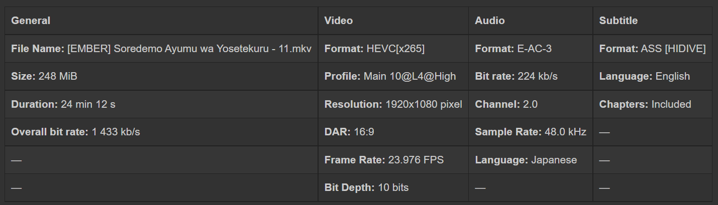 - [EMBER] Soredemo Ayumu wa Yosetekuru - 11.mkv (248.0 MB)