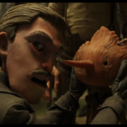 Guillermo del Toro's Pinocchio (or simply Pinocchio) is a 2022 stop-motion animated musical fantasy film directed by Guillermo del Toro and Mark Gustafson (in his feature directorial debut) with a screenplay by del Toro and Patrick McHale from a story by del Toro and Matthew Robbins. Based on Gris Grimly's design from his 2002 edition of the 1883 Italian novel The Adventures of Pinocchio by Carlo Collodi, it reimagines the story in 1930s Fascist Italy as "a story of love and disobedience as Pinocchio struggles to live up to his father's expectations, learning the true meaning of life. It stars the voices of Ewan McGregor, David Bradley, Gregory Mann, Burn Gorman, Ron Perlman, John Turturro, Finn Wolfhard, Cate Blanchett, Tim Blake Nelson, Christoph Waltz and Tilda Swinton.