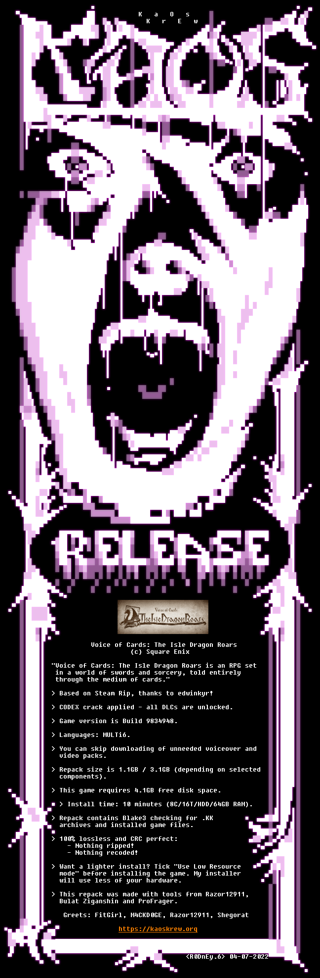Voice of Cards: The Isle Dragon Roars (Build 9834948 + All DLCs, MULTi6) | KaOs Repack | Selective Download | From 1.1GB