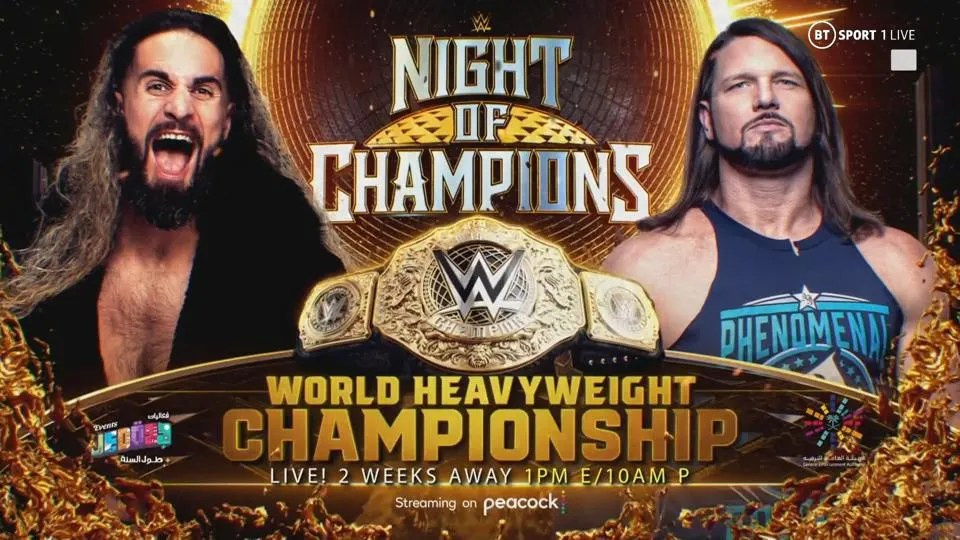 History begins, and champions are made at WWE Night of Champions. Seth "Freakin" Rollins and AJ Styles battle to become the first World Heavyweight Champion. Roman Reigns & Solo Sikoa look to reclaim championship gold for The Bloodline as they challenge Sami Zayn & Kevin Owens. Brock Lesnar sets out to destroy Cody Rhodes.
