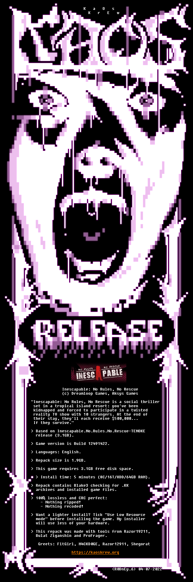 Inescapable: No Rules, No Rescue | KaOs Repack | 1.9GB