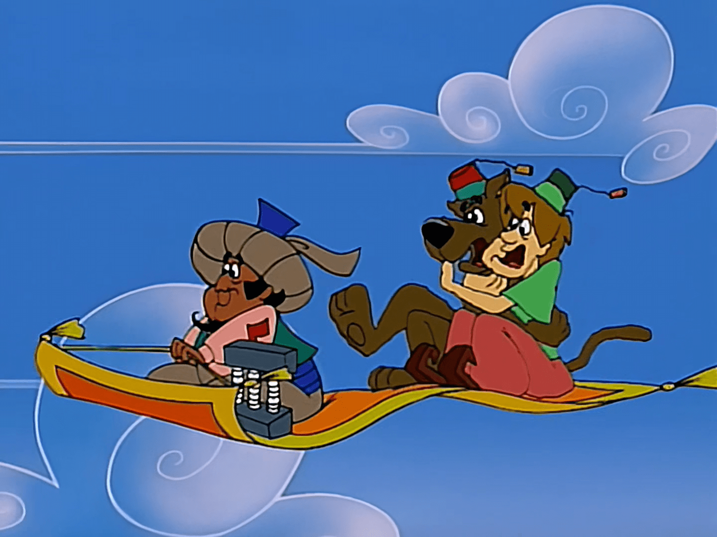 Scooby-Doo and Shaggy travel to Arabia to become the Caliph's Royal Food Tasters. But they bite off more than they can chew and are forced to run for their lives! It's a wild magic carpet ride as Scooby-Doo, Shaggy and their genie (Yogi Bear) and a jolly sailor named Sinbad (Magilla Gorilla) take you on an adventure of mistaken identities, exotic locations and fun-filled action and surprises!