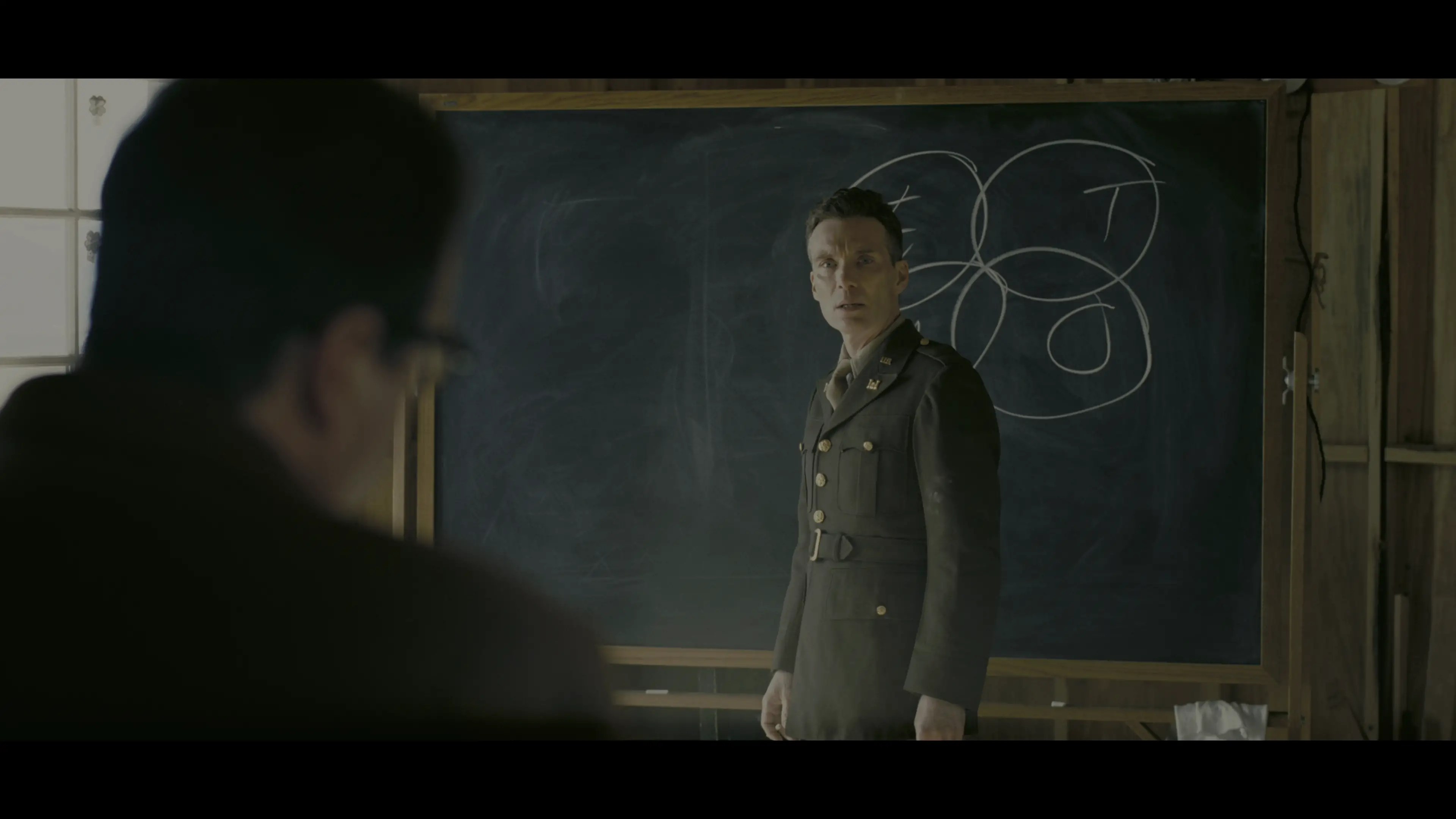 Il fisico J Robert Oppenheimer lavora con una squadra di scienziati durante il Progetto Manhattan, che porta allo sviluppo della bomba atomica.