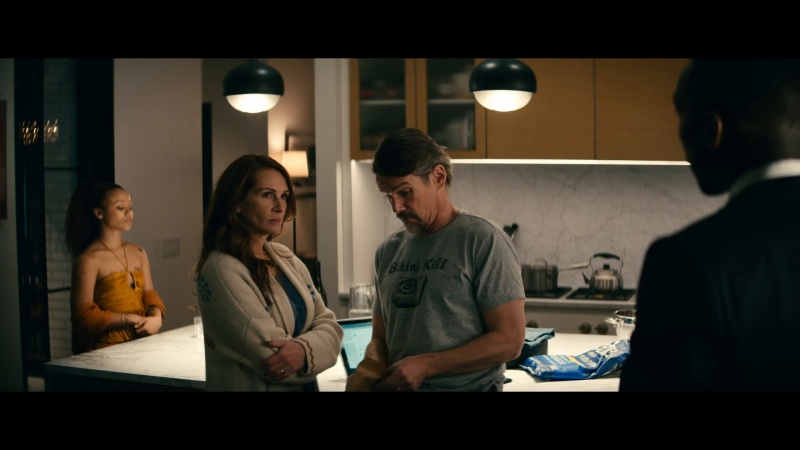 A family's getaway to a luxurious rental home takes an ominous turn when a cyberattack knocks out their devices — and two strangers appear at their door.