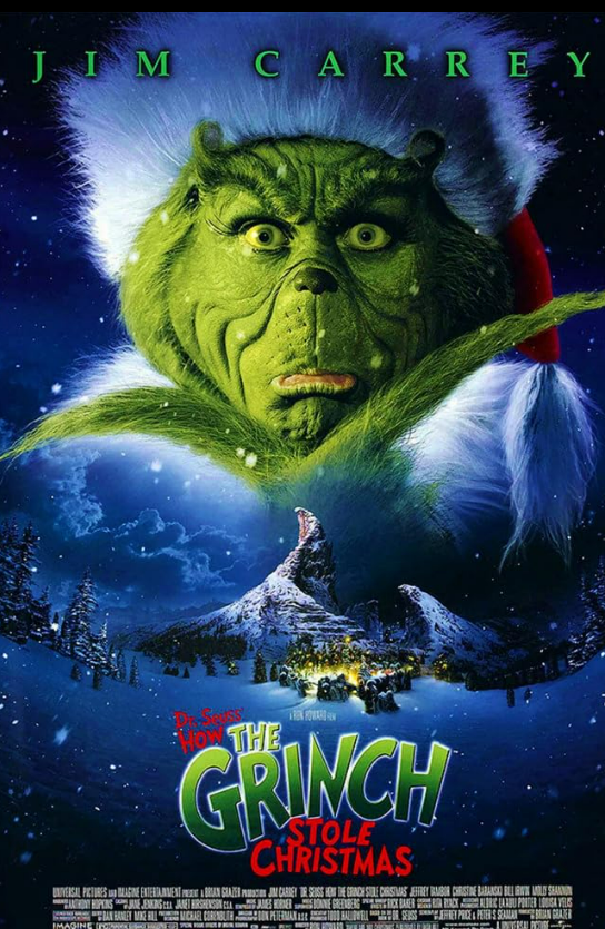 Description: Inside a snowflake exists the magical land of Whoville, wherein live the Whos, an almost-mutated sort of Munchkin-like people who all love Christmas. Just outside of their beloved town lives the Grinch (Jim Carrey), a nasty creature that hates Christmas and plans to steal it from the Whos, which he equally abhors. Little Cindy Lou Who (Taylor Momsen) decides to befriend the Grinch.