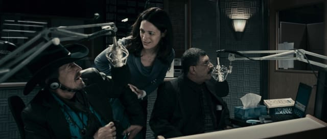 barricades himself in the radio booth and tries to figure out a way to warn his