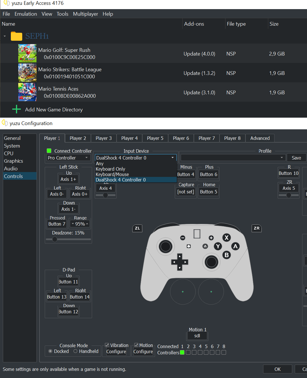 Mario - Tennis Aces - Strikers - Golf Rush (3in1) + Yuzu EA 4176 [PC] - SEPH1- qt.conf (0.0 KB) user sdmc