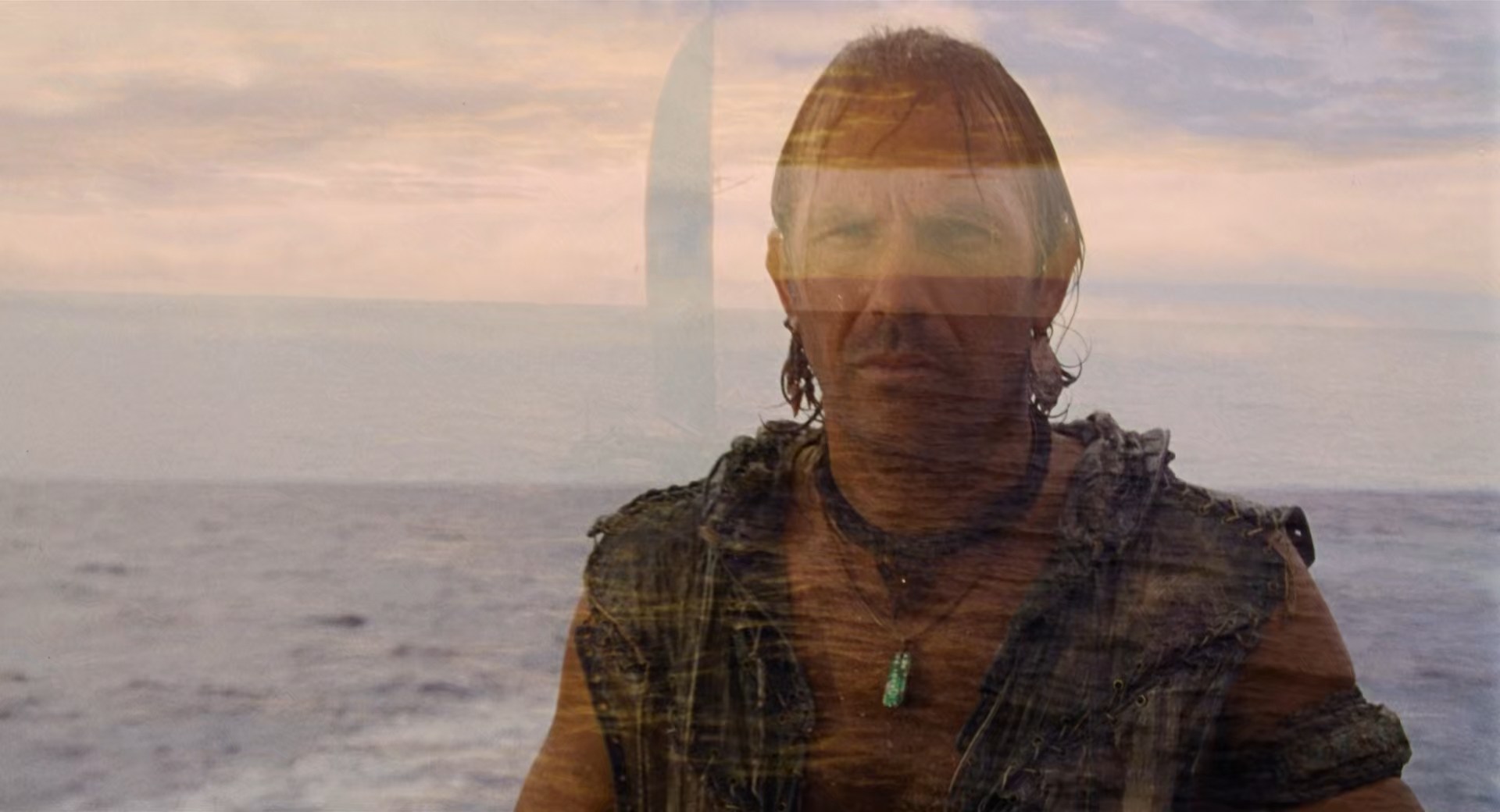 In a futuristic world where the polar ice caps have melted and made Earth a liquid planet, a beautiful barmaid rescues a mutant seafarer from a floating island prison. They escape, along with her young charge, Enola, and sail off aboard his ship. But the trio soon becomes the target of a menacing pirate who covets the map to "Dryland" -- which is tattooed on Enola's back.