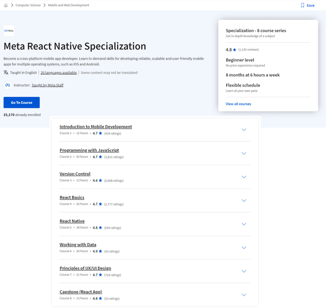 [Coursera] Meta React Native Specialization - 8 course series