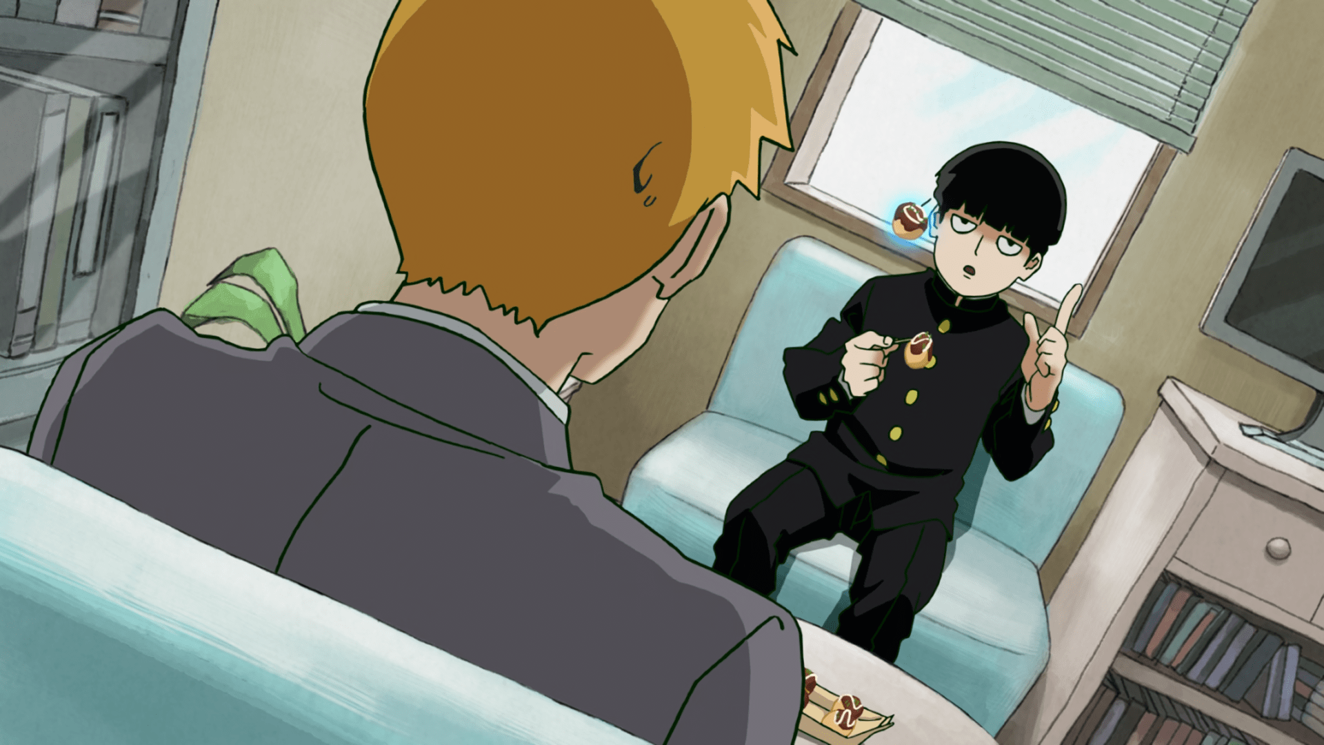 In order to effectuate control on his skills, Mob enlists himself under the wing of Arataka Reigen, a con artist claiming to be a psychic, who exploits Mob's powers for pocket change. Now, exorcising evil spirits on command has become a part of Mob's daily, monotonous life. However, the psychic energy he exerts is barely the tip of the iceberg; if his vast potential and unrestrained emotions run berserk, a cataclysmic event that would render him completely unrecognizable will be triggered. The progression toward Mob's explosion is rising and attempting to stop it is futile.