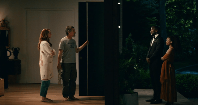 A family's getaway to a luxurious rental home takes an ominous turn when a cyberattack knocks out their devices — and two strangers appear at their door.
