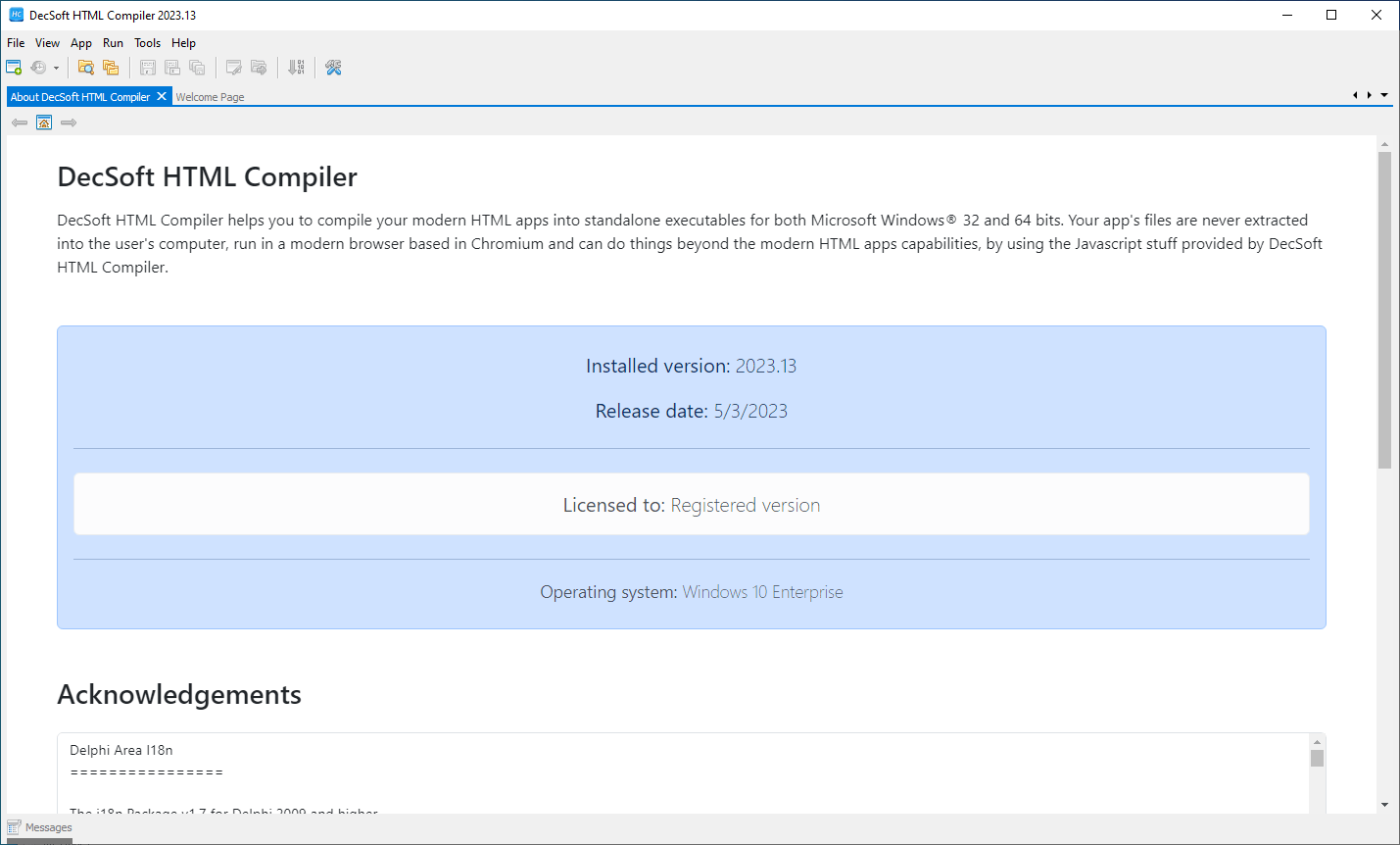 With DecSoft HTML Compiler you can easily compile your modern HTML apps (Single Page Apps, for example) into standalone executables for both Microsoft WindowsÂŽ 32 and 64 bits. Your appâ files are never extracted into the userâs computer and run in a modern browser environment based in Chromium.