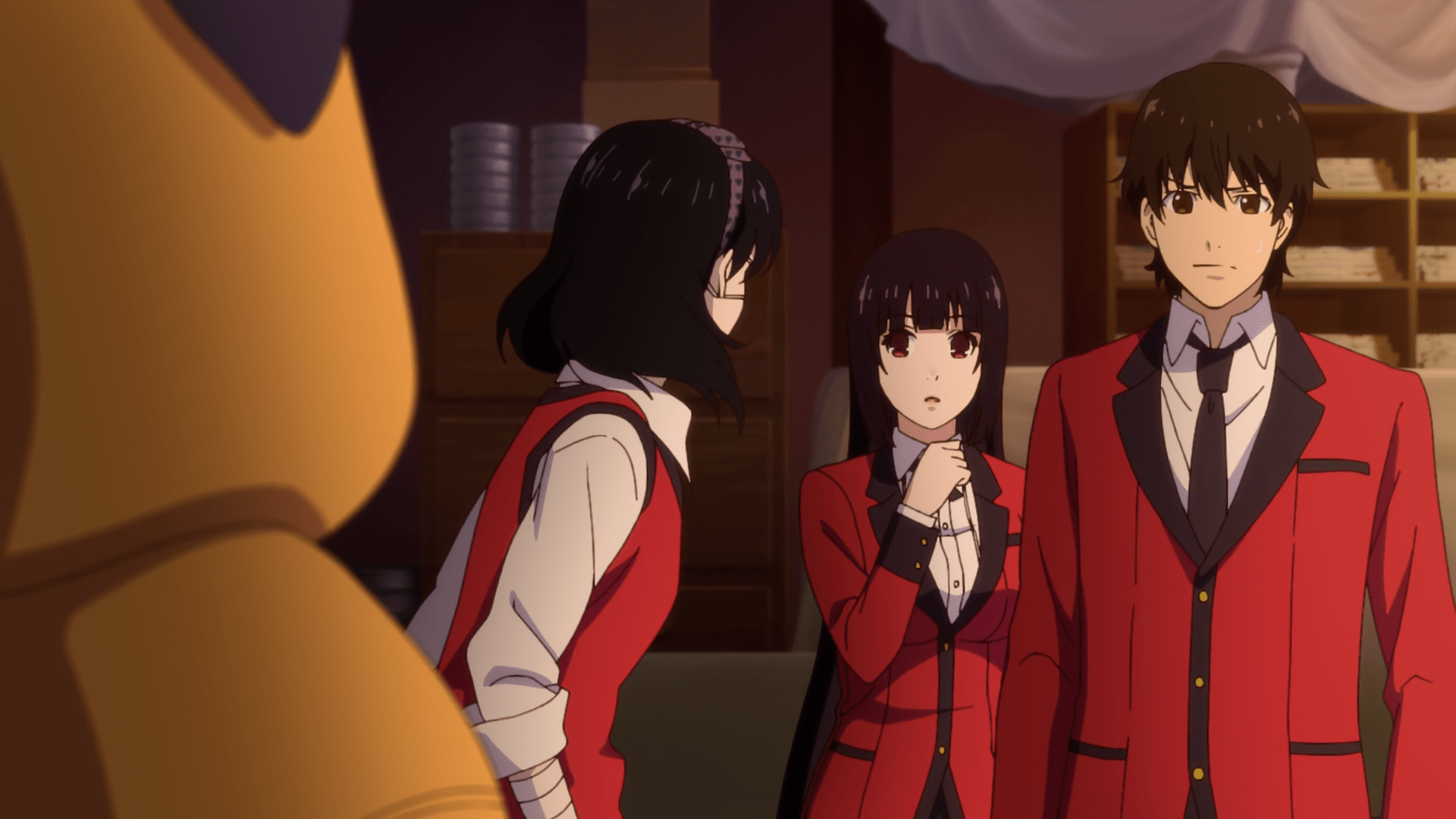 Yumeko Jabami, a seemingly naive and beautiful transfer student, is ready to try her hand at Hyakkaou's special curriculum. Unlike the rest, she doesn't play to win, but for the thrill of the gamble, and her borderline insane way of gambling might just bring too many new cards to the table.